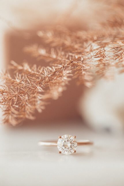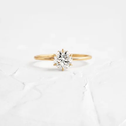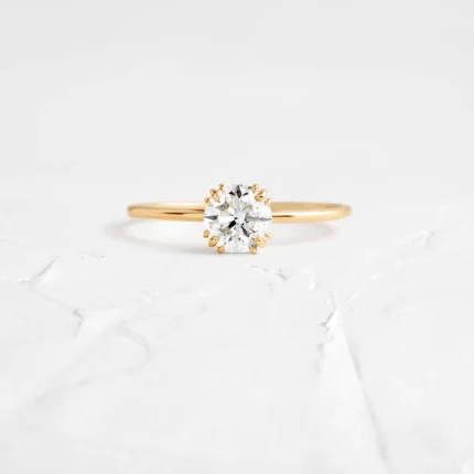 14k 純金圓形實驗室培育鑽石單石訂婚戒指