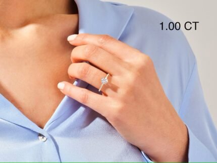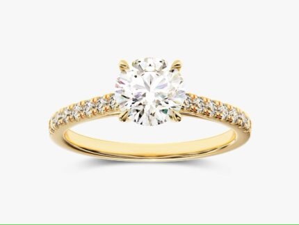 這款精美的 14K 純金圓形明亮式鑽石戒指鑲嵌一顆 F 色、VS1 淨度的實驗室合成鑽石。戒指有白金、玫瑰金和黃金三種顏色可選,並帶有 BIS 印記和 IGI 認證,品質保證。 10-12 個工作天內即可享受無憂配送,並透過線上聊天和視訊通話享受卓越的客服支援。