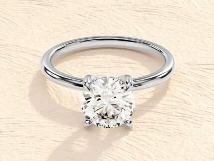The Karat Store 出品的這款圓形切割 1 克拉實驗室培育鑽石訂婚戒指,將永恆優雅與環保概念完美融合。戒指採用 14K 金材質,並有玫瑰金、黃金和白金三種選擇,鑲嵌 VVS-VS 淨度和 EF 色鑽石。是注重環保的情侶的理想選擇。