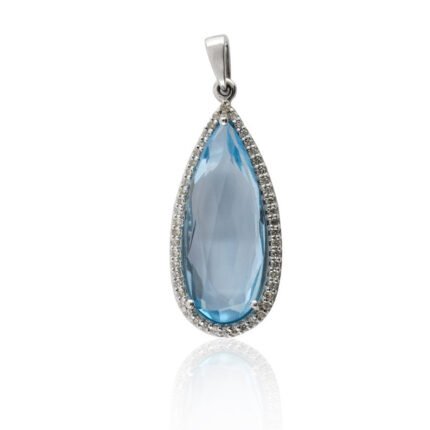 14K 純金白色托帕石水晶鑽石花朵吊墜