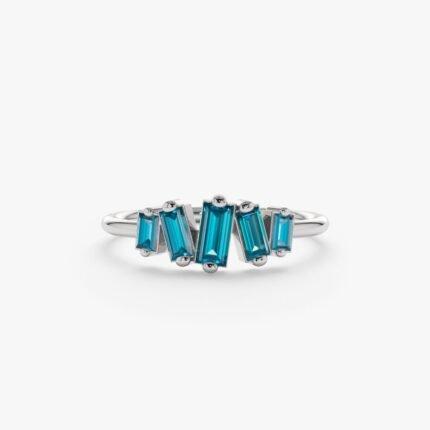 14K 純金長方形倫敦藍托帕石戒指