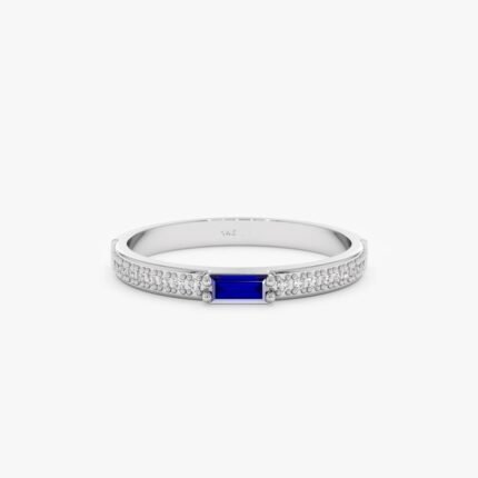 14K 純金長方形紅寶石與鑽石結婚戒指