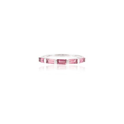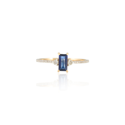 14K 純金鑽石與長方形粉紅藍寶石戒指