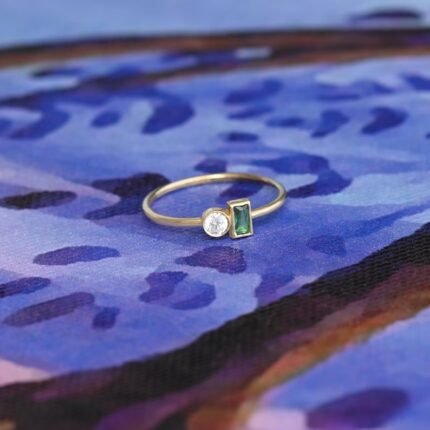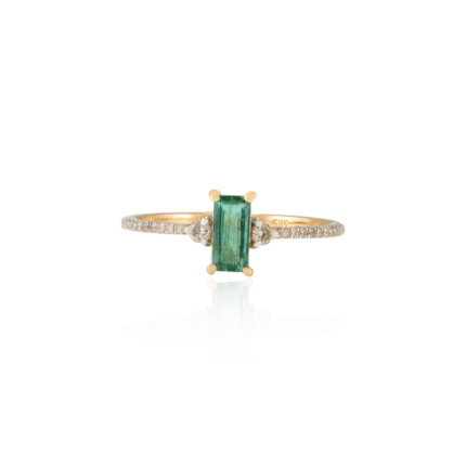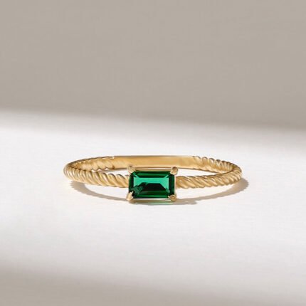 14K 純金鑽石與長方形祖母綠永恆戒指