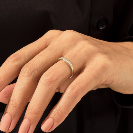 密鑲莫桑石鑽石絲帶戒指 | 14k 純金設計師女士戒指