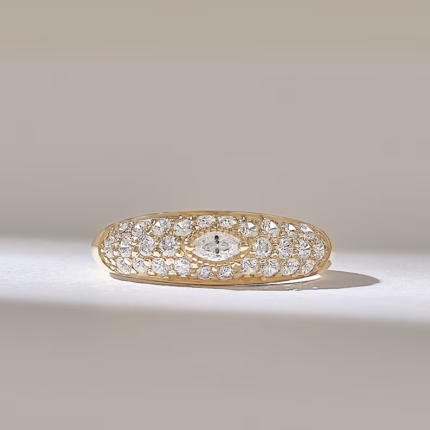 欖尖形莫桑石鑽石圓頂戒指,18k 金密鑲印章個性戒指,適合女士