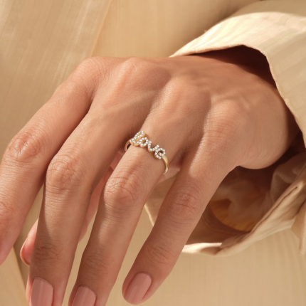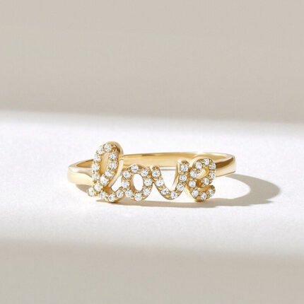 密鑲莫桑石鑽石手寫愛情戒指 | 女士精緻草書字母戒指