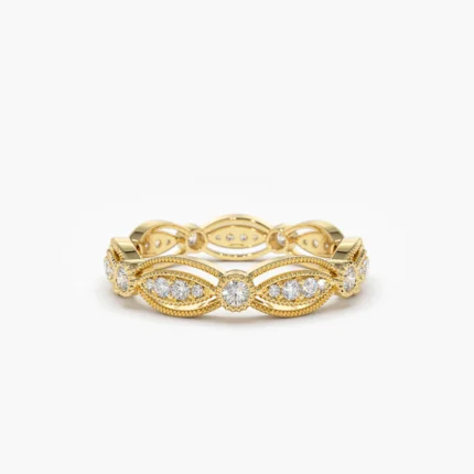 14K金復古裝飾藝術風格鑽石永恆結婚戒指
