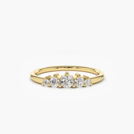 「優雅的 14K 金 7 石鑽石漸變結婚戒指 - 設計精美,七顆鑽石大小逐漸變化,是精緻而璀璨的結婚戒指的完美之選。”