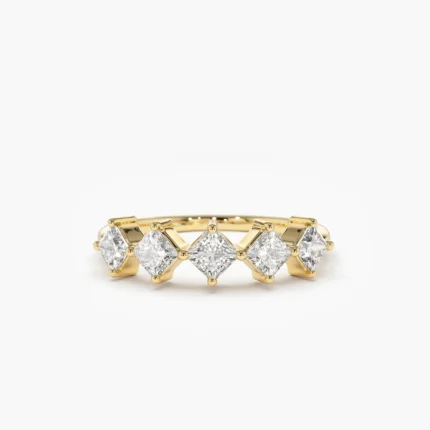 14K 純金公主方形切割 5 石鑽石結婚戒指