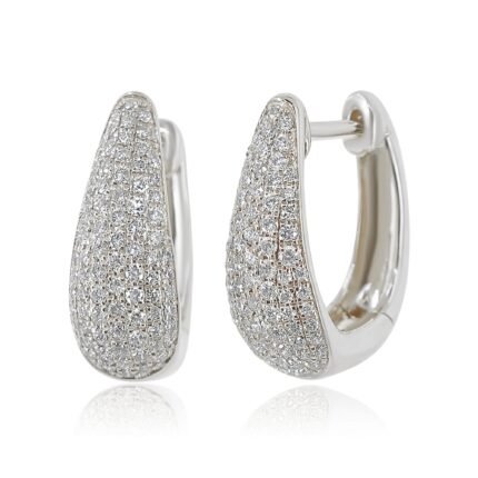 “優雅的 18k 金密鑲莫桑石鑽石環形耳環 - 設計精緻,密鑲莫桑石鑽石於環中,可為任何造型增添耀眼光彩。”