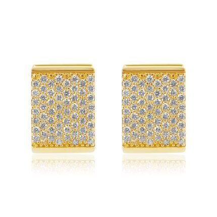 “優雅的 18k 金密鑲莫桑石鑽石方形環形耳環 - 現代設計,密鑲莫桑石鑽石,打造大膽奢華的外觀。”