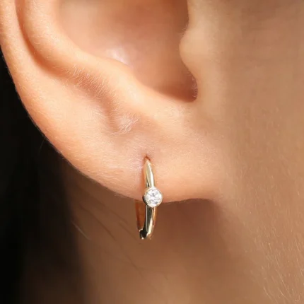 這些內嵌式耳環採用精緻的線性設計,鑲嵌著閃閃發光的鑽石,完美呈現日常精緻而又現代的氣息。