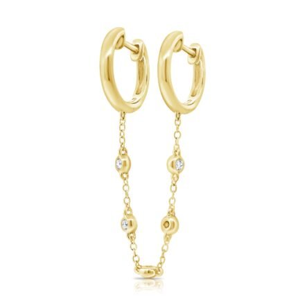 14K金環間隔邊框莫桑石鑽石連接耳環