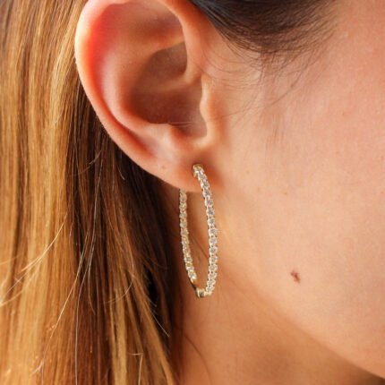 14K金內外莫桑石鑽石環形耳環