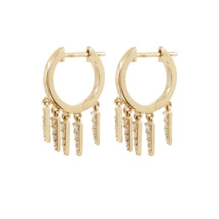 14k 金莫桑石鑽石橢圓形吊環耳環