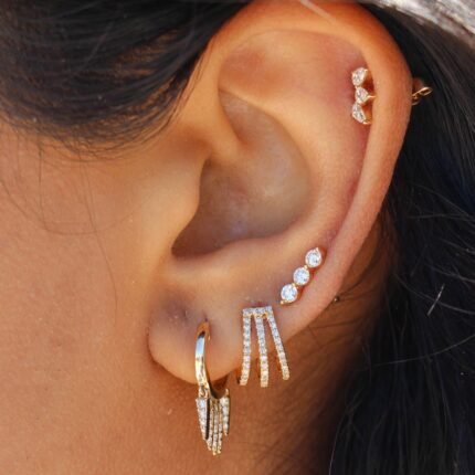 14K金莫桑石鑽石吊墜粗圓環耳環