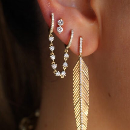 14k金莫桑石鑽石吊環祖母綠切割耳環