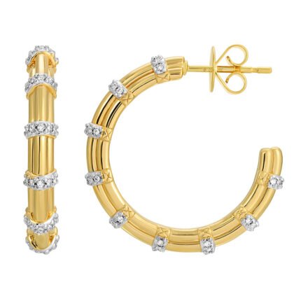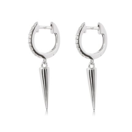 14K金莫桑石鑽石環狀實心雙線尖刺耳環