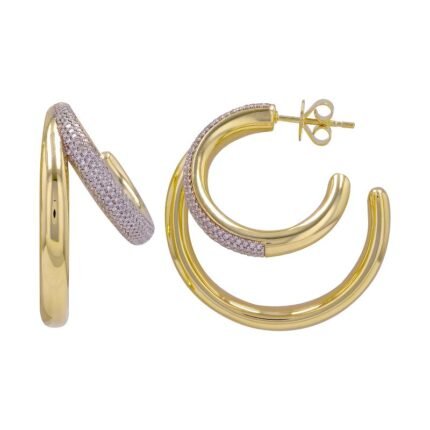 “優雅的 18k 金莫桑石鑽石雙線開口環耳環 - 採用兩排莫桑石鑽石的驚艷設計,完美增添精緻、璀璨的光芒。”