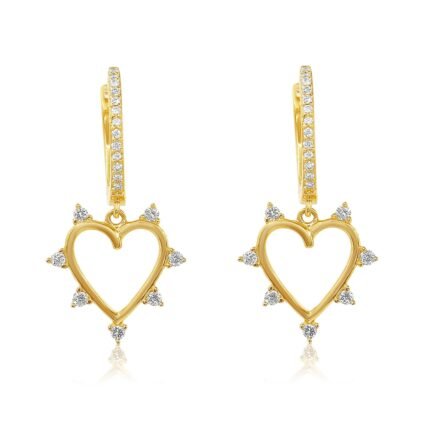 14K 金莫桑石鑽石爪鑲心形耳環