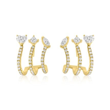 14K黃金迷你三重莫桑石鑽石耳骨夾
