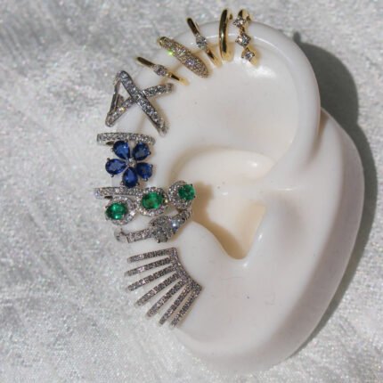 18k金莫桑石鑽石四線籠狀耳骨夾