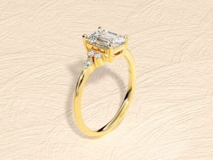 14k金祖母綠切割3克拉莫桑石訂婚戒指