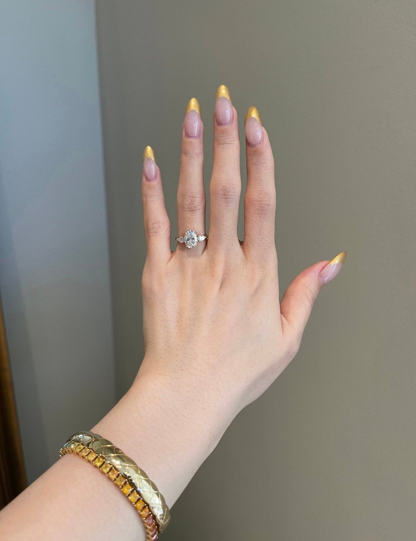 18k 純金三石橢圓形莫桑石訂婚戒指