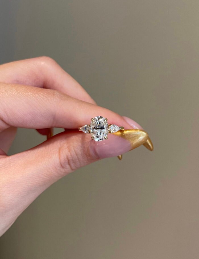 三石橢圓形莫桑石訂婚戒指 18K 金