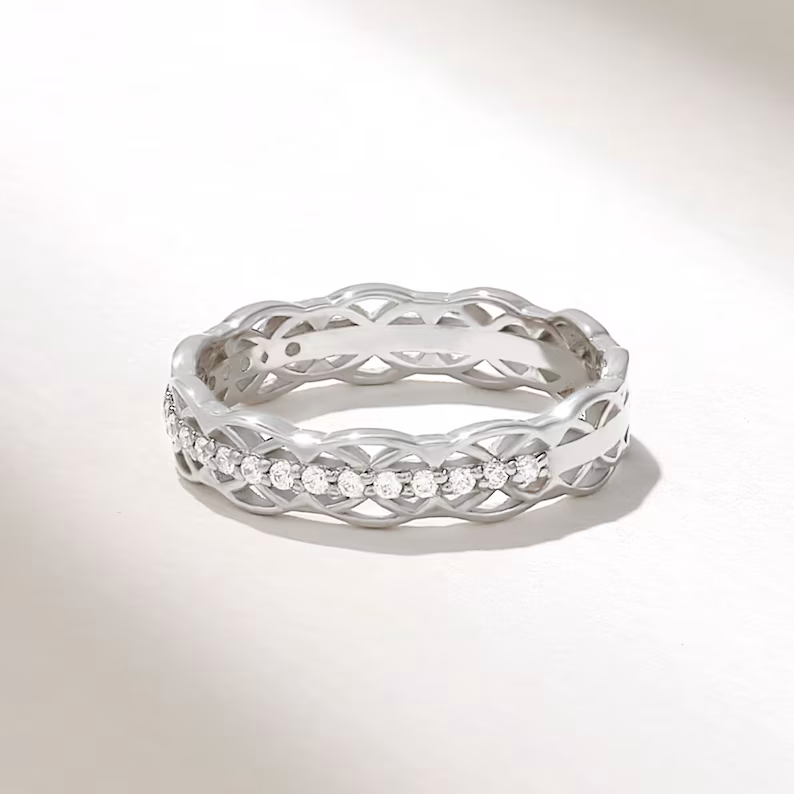 這款復古風格的凱爾特結結婚戒指採用三位一體永恆結設計,完美象徵著永恆的愛情和永恆而有意義的美麗。