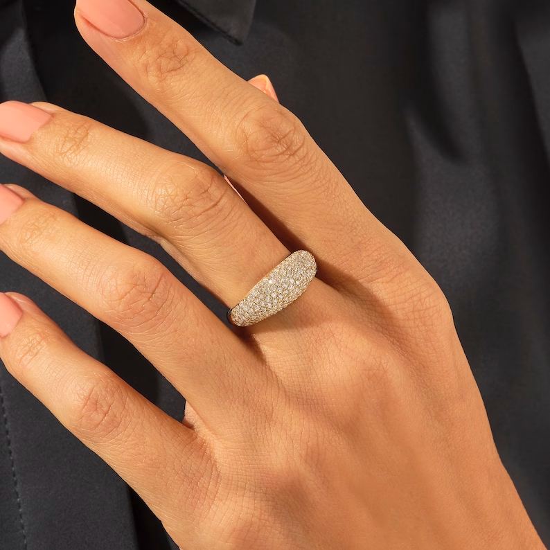 厚實密鑲圓頂戒指非常適合想要以風格和內涵脫穎而出的人,是追求奢華和影響力的首選配件。