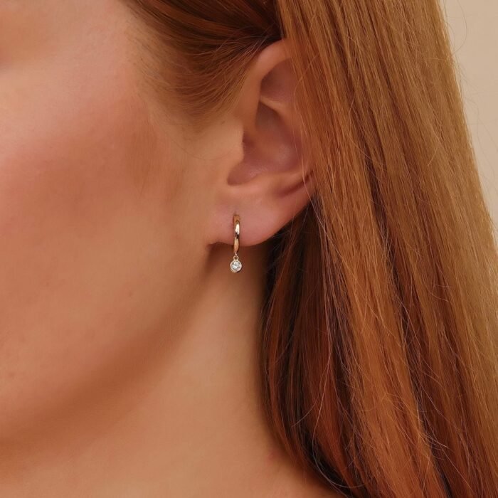 用我們的單顆天然鑽石吊墜耳環,為您的耳環增添一抹雋永優雅。這款精心打造的純金耳環,以包鑲方式點綴璀璨鑽石,打造簡約卻迷人的造型。