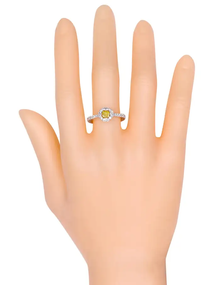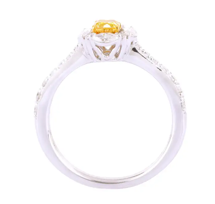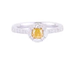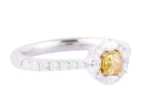 單顆鑽石彩黃與白色莫桑石鑽石戒指 | 14K 純金單顆鑽石戒指