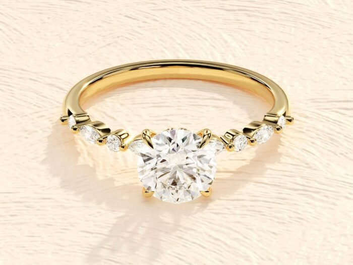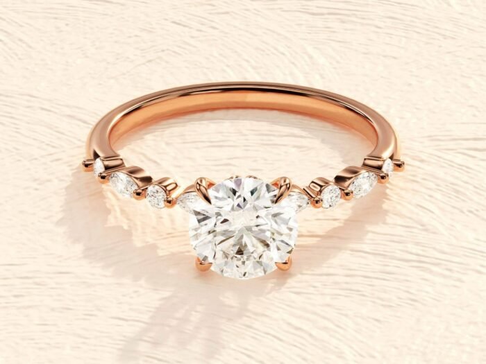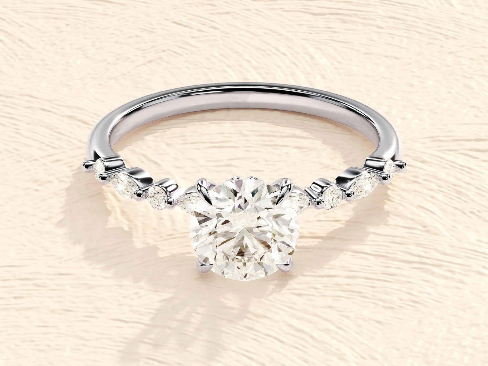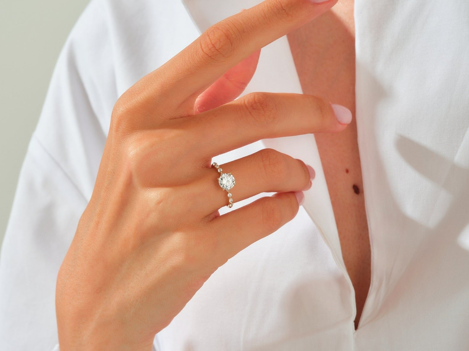 圓形切割 1 克拉實驗室培育鑽石密釘鑲嵌訂婚戒指