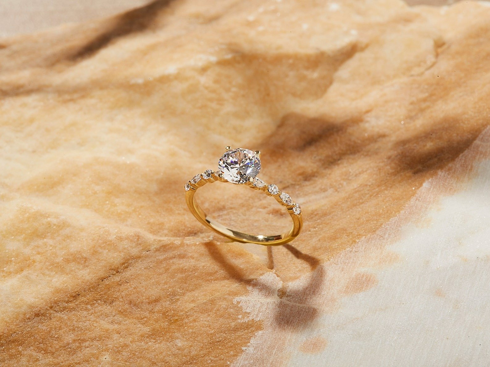 The Karat Store 出品的這款 14K 純金單顆實驗室培育鑽石 3 克拉訂婚戒指,將永恆優雅與環保理念完美融合。戒指有玫瑰金、黃金和白金三種款式可選,鑲嵌一顆 3.00 克拉 VVS-VS 淨度和 EF 色級實驗室培育鑽石。是注重環保的情侶的理想選擇。