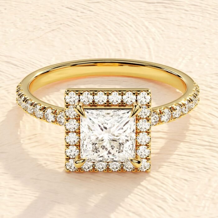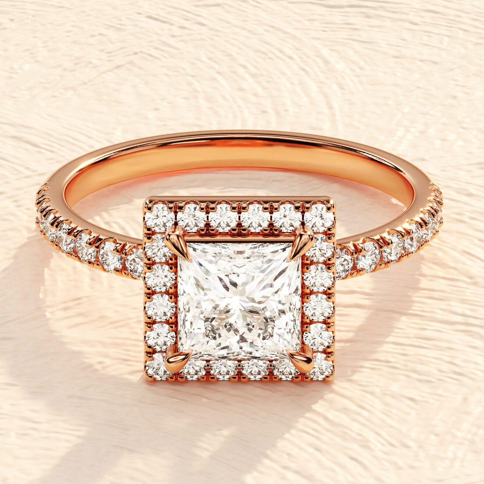 包裹在一個 光暈設定,主石更顯璀璨奪目,周圍環繞著一排精緻的點綴寶石,更添光彩。 14K純金 (可依要求提供 18K 材質),這款戒指有 玫瑰金、黃金和白金 以配合您的獨特風格。 頻寬和厚度均為1.50mm 確保光滑而堅固的表面,非常適合日常佩戴。