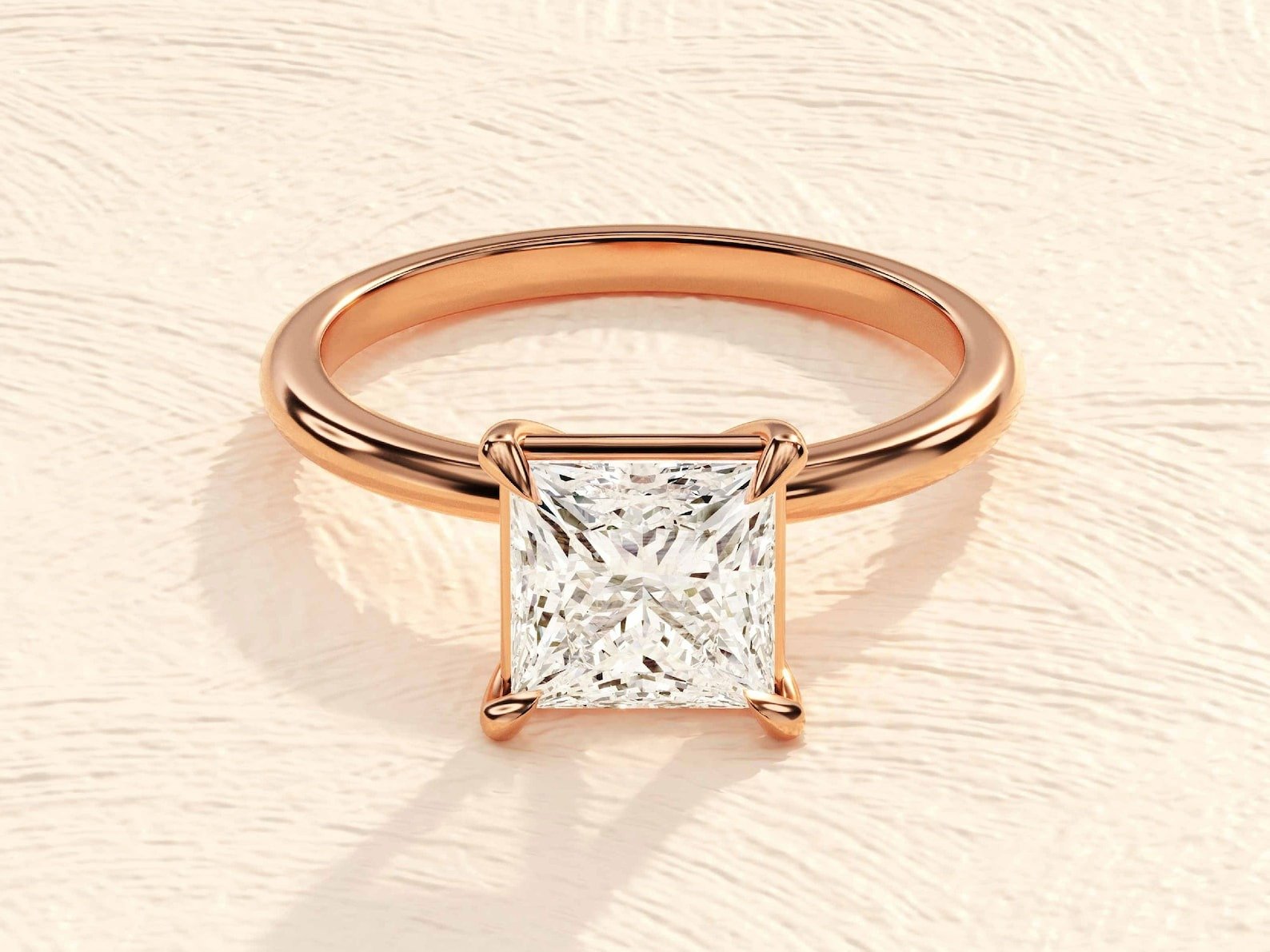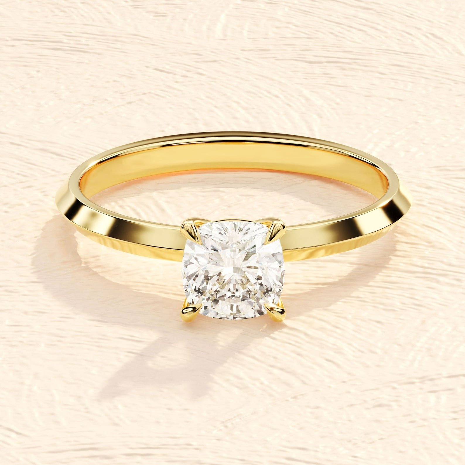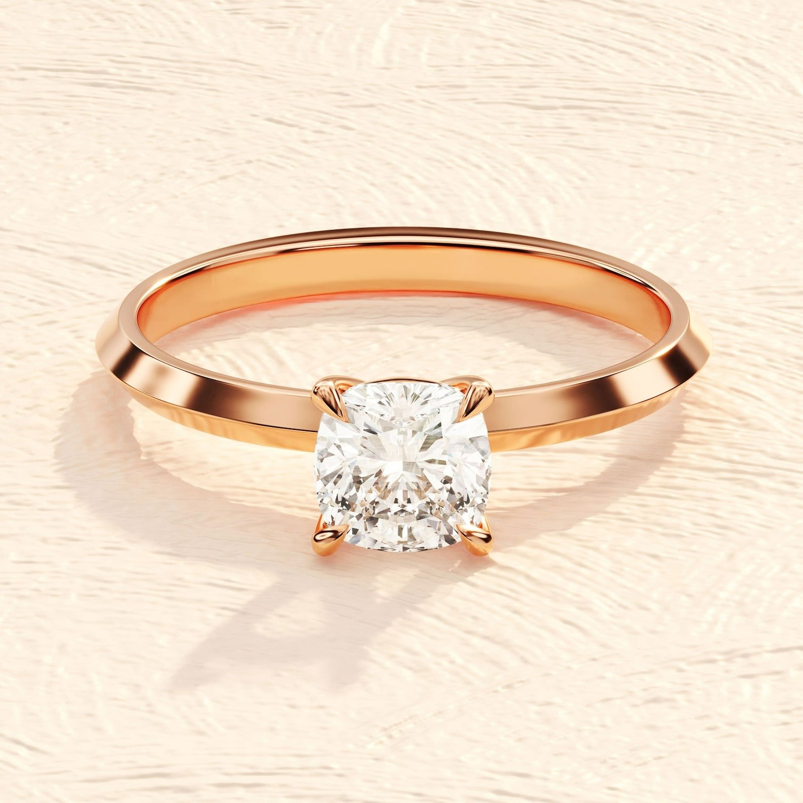 精心製作 14K純金 ,這款戒指有 玫瑰金、黃金和白金 適合各種風格。 纖薄的 1.50 毫米錶帶 增強了墊形切割寶石的光彩,創造出永恆而精緻的外觀。