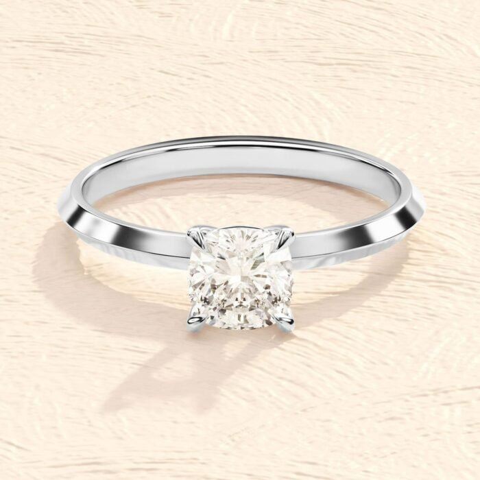 經典優雅與現代輝煌在此相遇 墊形切割莫桑石鑽石訂婚戒指. 特色 1.00 克拉莫桑石鑽石 和 D 顏色和 VVS1 淨度,這枚戒指擁有非凡的火彩和光芒,可與天然鑽石相媲美。
