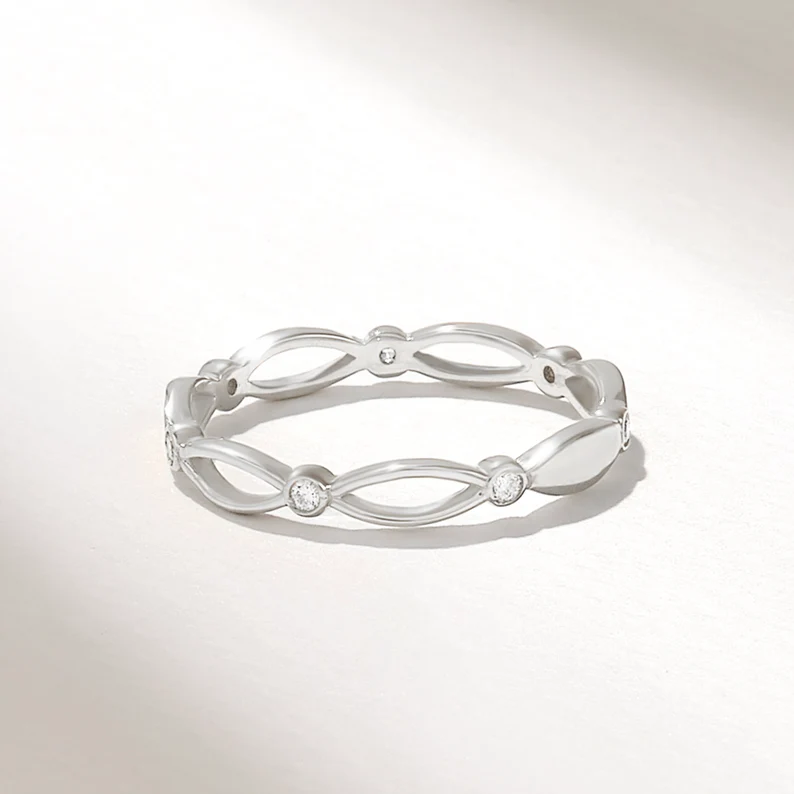 以我們的天然鑽石密鑲永恆戒指,頌揚永恆優雅。這款戒指採用 14K 純金打造,飾有標誌性的凱爾特結圖案。這款精緻的戒指將經典傳統與現代光彩完美融合,是任何女性的雋永之選。有白金、黃金和玫瑰金三種款式可選,百搭百搭,適合各種個人風格。