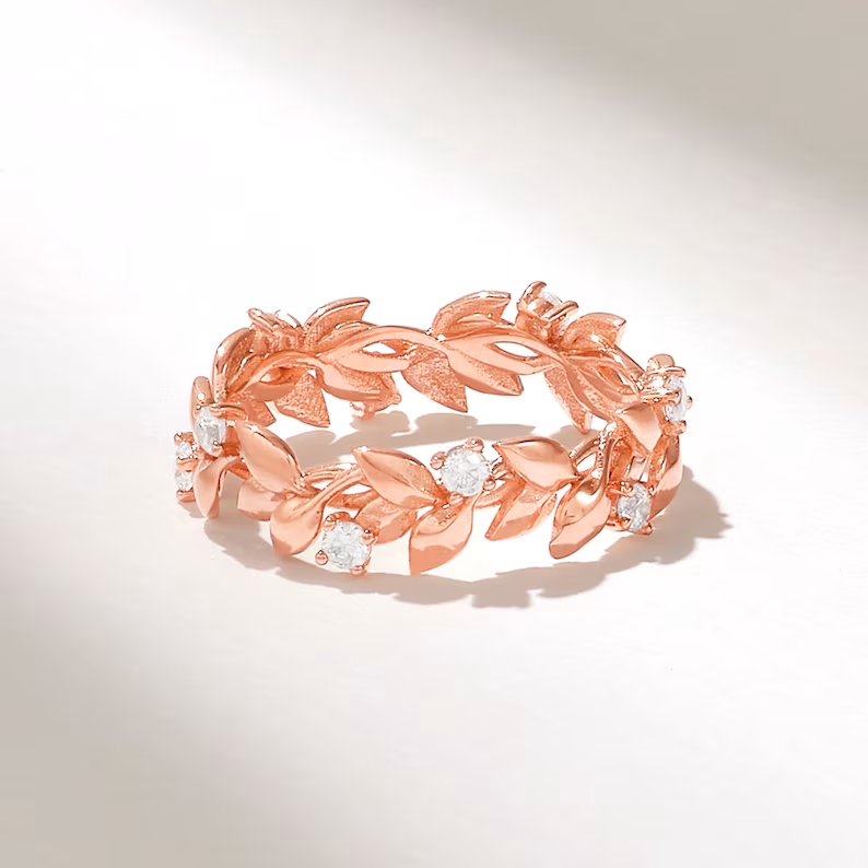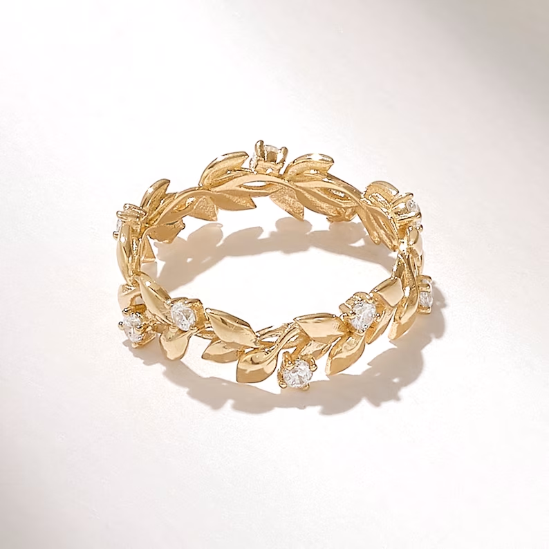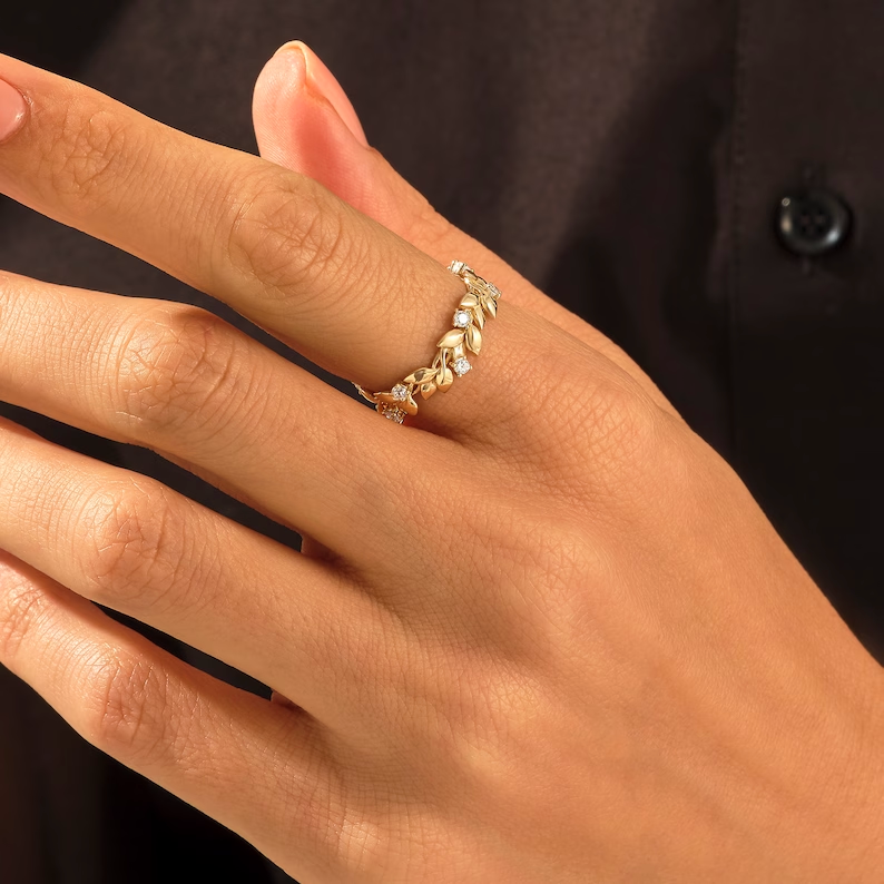 天然鑽石密鑲葉形戒指 | 純金藤蔓永恆結婚戒指 | 精緻戒指