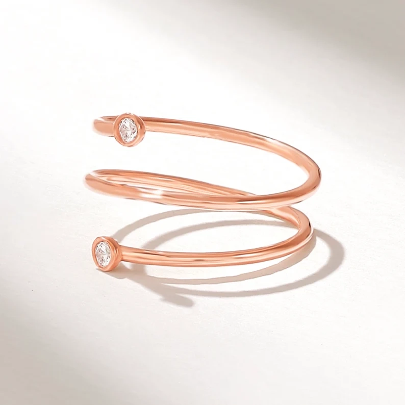 - 產品名稱: 天然鑽石邊框螺旋戒指 | 18k環繞戒指 | 純金色細線圈戒指