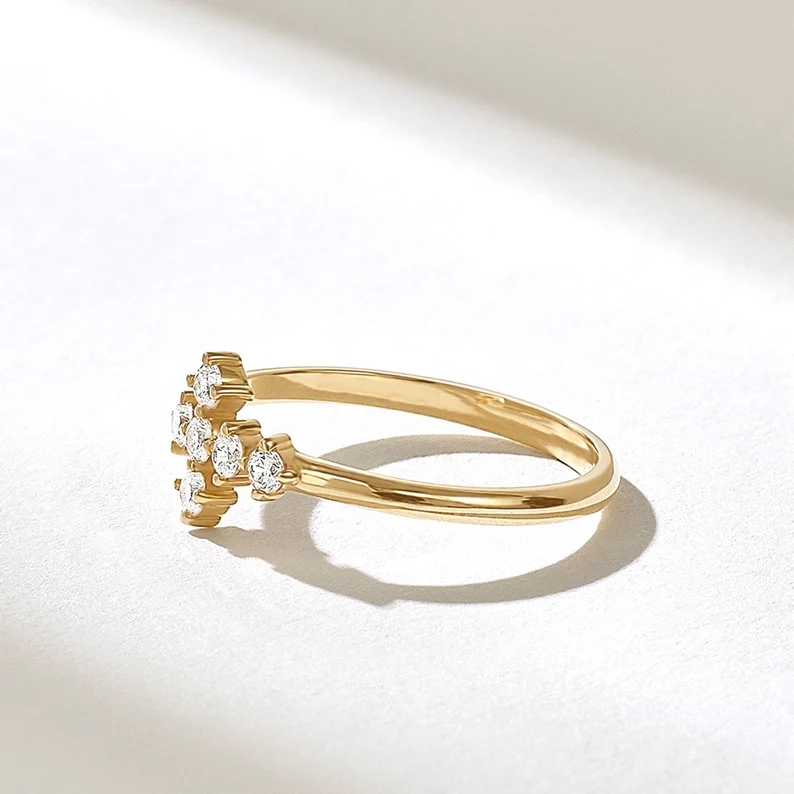 優雅的18K純金訂婚戒指,採用密鑲天然鑽石十字設計,共鑲嵌0.18克拉鑽石。經GIA和BIS認證。
