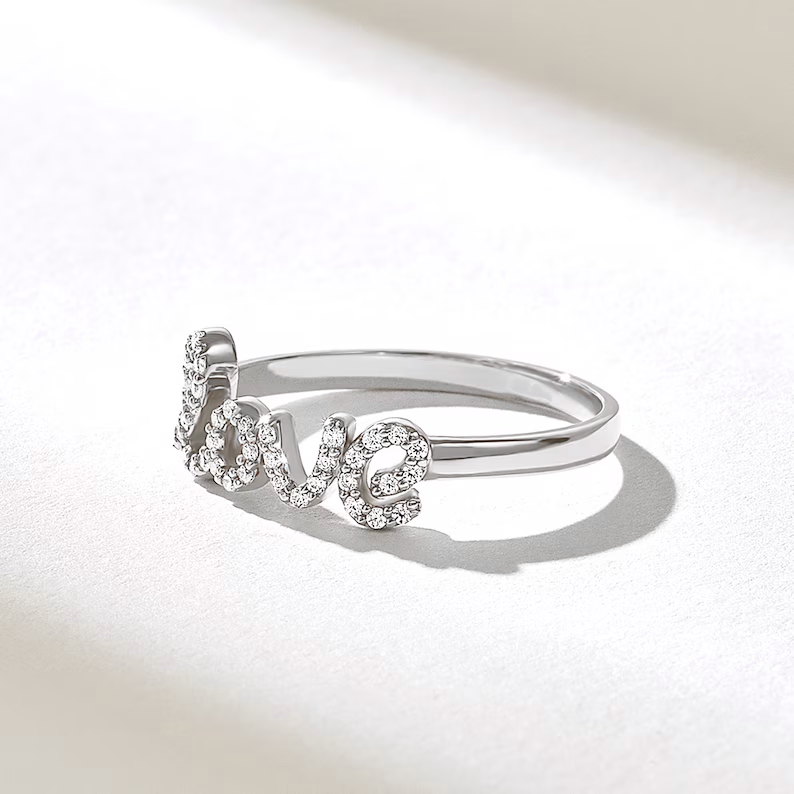 - 產品名稱: 密鑲天然鑽石手寫愛情戒指 | 女士精緻草書字母戒指