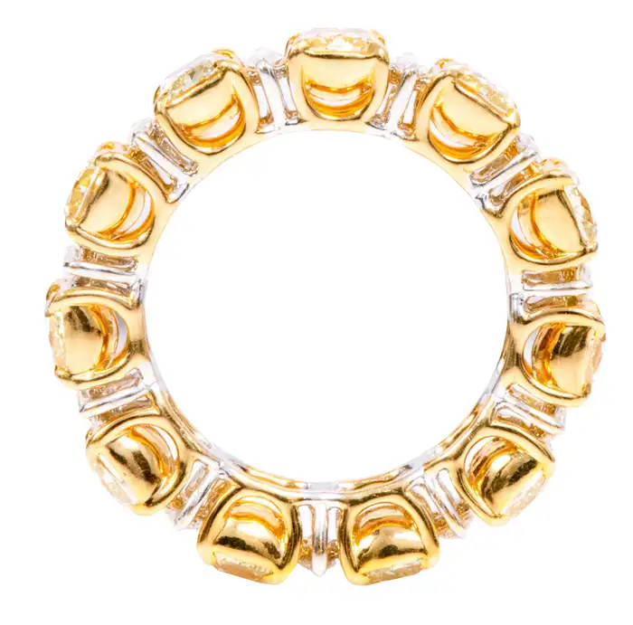 隆重介紹 Solitaire 黃鑽白鑽永恆戒指,散發優雅與時尚氣息的奢華單品。這款令人驚豔的永恆戒指鑲嵌著令人心動的黃鑽和白鑽組合,總重達 6.00 克拉。