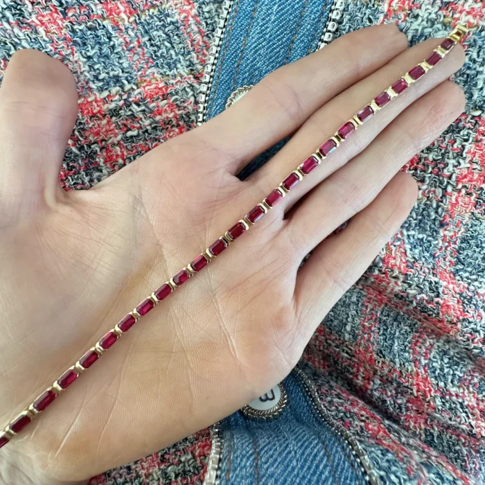 介紹 14K 純金東西方紅寶石網球手鍊 ,一款引人注目、優雅非凡的飾品,展現了天然紅寶石的瑰麗,但其方向卻偏向東西。這款奢華的手鍊有白金、玫瑰金和黃金三種顏色可選,並採用14K純金打造,為您提供豐富的選擇,以搭配您的風格。這款手鍊採用大膽的設計和璀璨的寶石,使其成為一件精緻的配飾,無論是出席特殊場合,還是為您的日常造型增添優雅氣質,都堪稱完美。