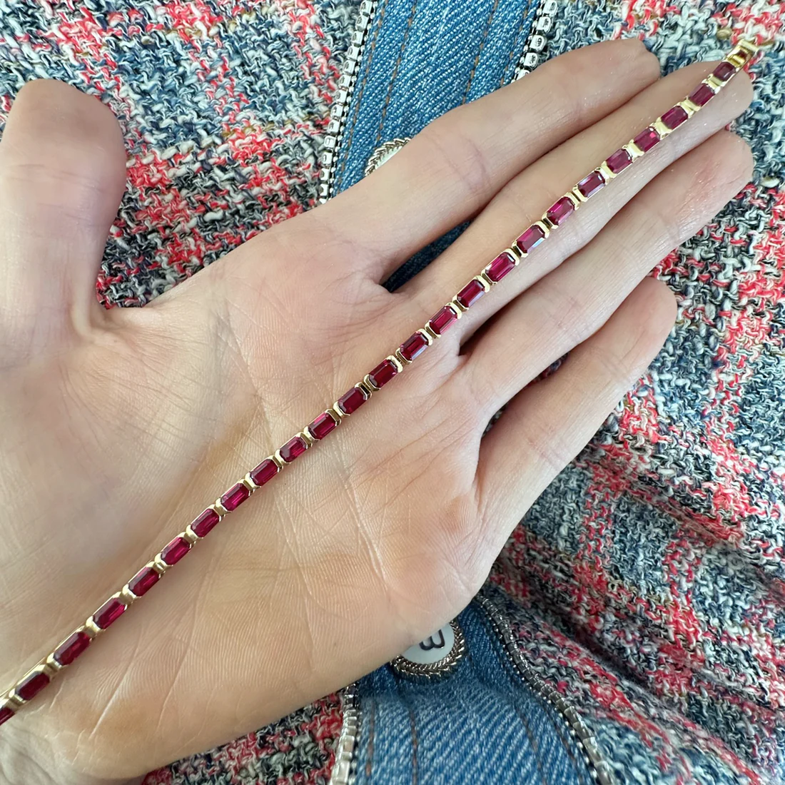但 East West 紅寶石網球手鍊卻是一款百搭的珠寶——既可以單獨佩戴,彰顯個性,又可以疊戴,打造時尚現代的造型。無論是出席正式晚宴,還是慶祝人生中某個特別的里程碑,它都是您的完美之選,甚至可以為您的日常穿搭增添一抹奢華氣息。