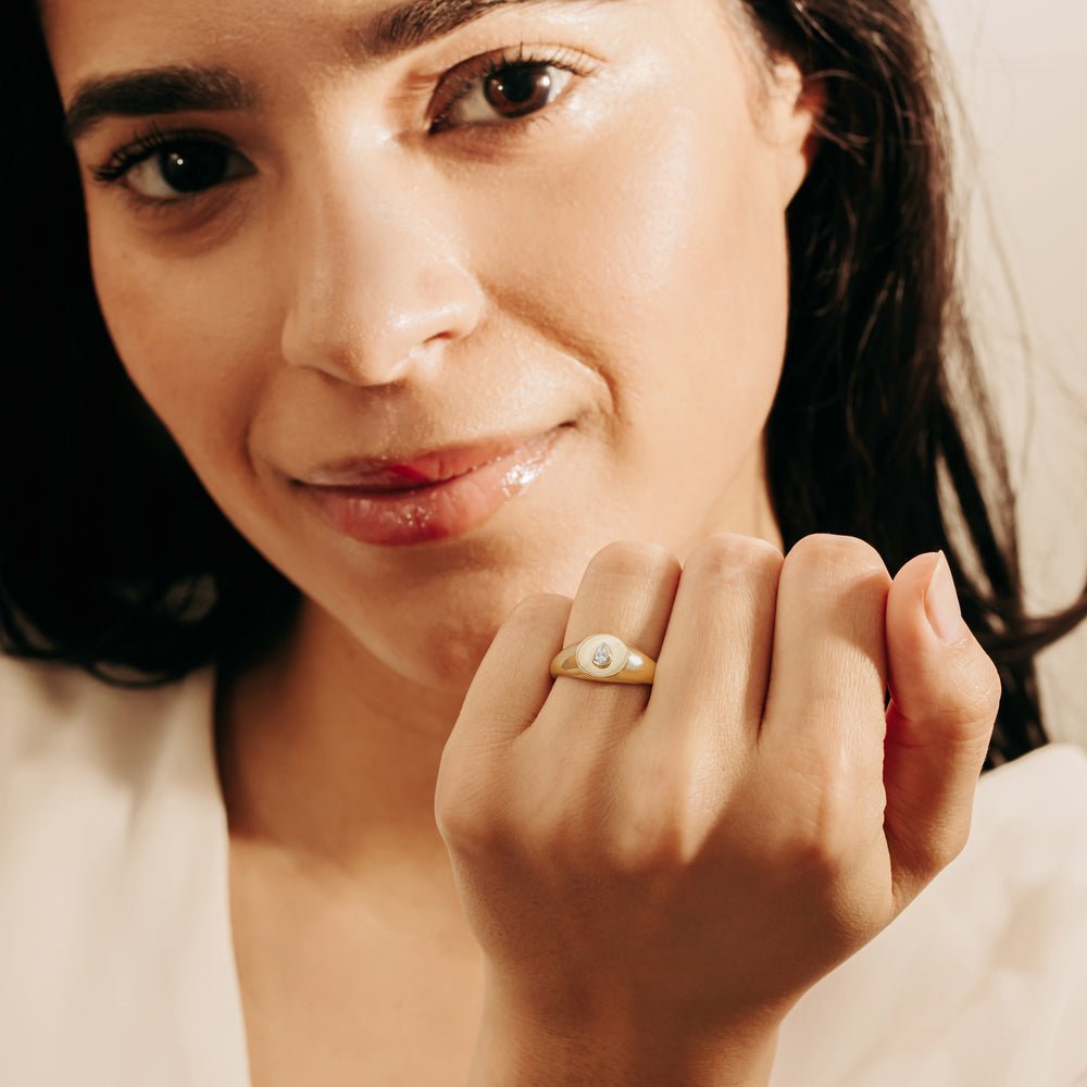梨形鑽石印章戒指光滑而優雅,非常適合為任何外觀增添一絲精緻感。
