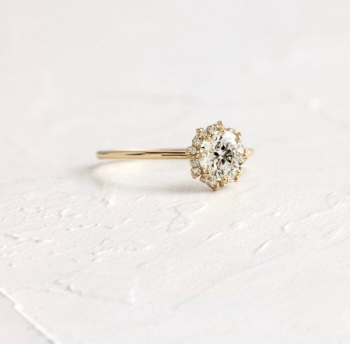 樹苗戒指,莫桑石鑽石金訂婚戒指
