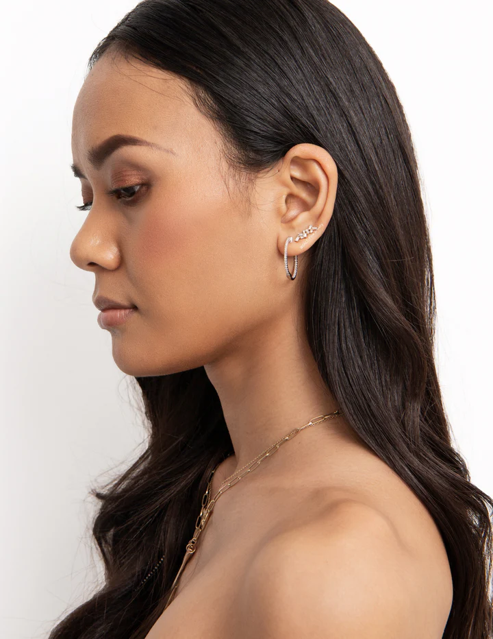 Baguette Chaos Climber 耳環非常適合追求現代美學與迷人魅力的人士。其獨特的設計使其能夠完美搭配正式場合和休閒裝扮,佩戴方式多樣化。這款耳環配戴舒適,並配有穩固的背襯,可全天配戴。